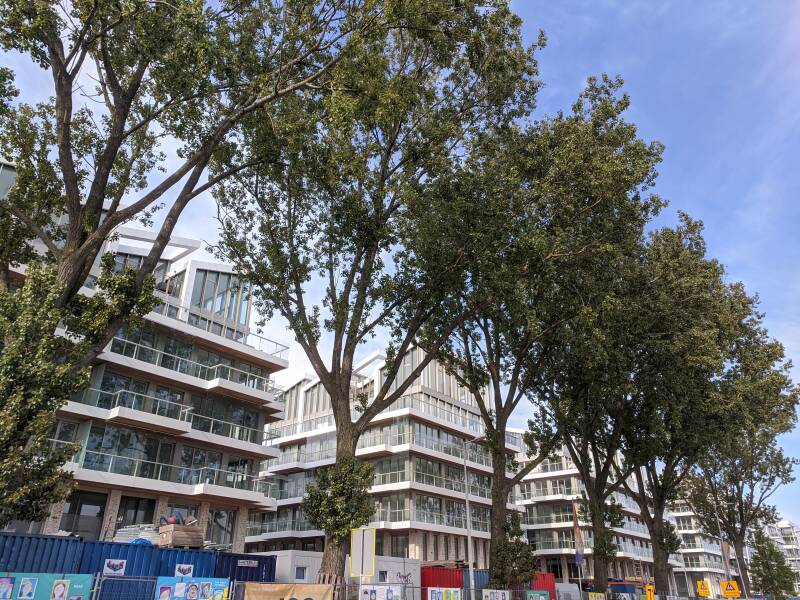 Het moet eind jaren vijftig zijn geweest dat deze bomen aan de Cruquiusweg geplant zijn. In die vijftig jaar zijn ze uitgegroeid tot deze beeldbepalende bomen die hoog boven de buurt uittorenden.