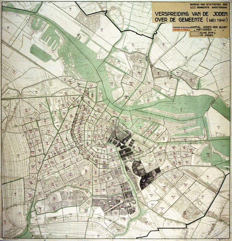 Omdat de gemeente Amsterdam alle Joodse bewoners in kaart had gebracht was het makkelijk voor de Duitsers om de Joodse Amsterdammers op te sporen....De kaart hiernaast geeft precies aan in welke straten van Amsterdam de Joden woonden. Een relatief groot deel dus in Amsterdam-Oost!