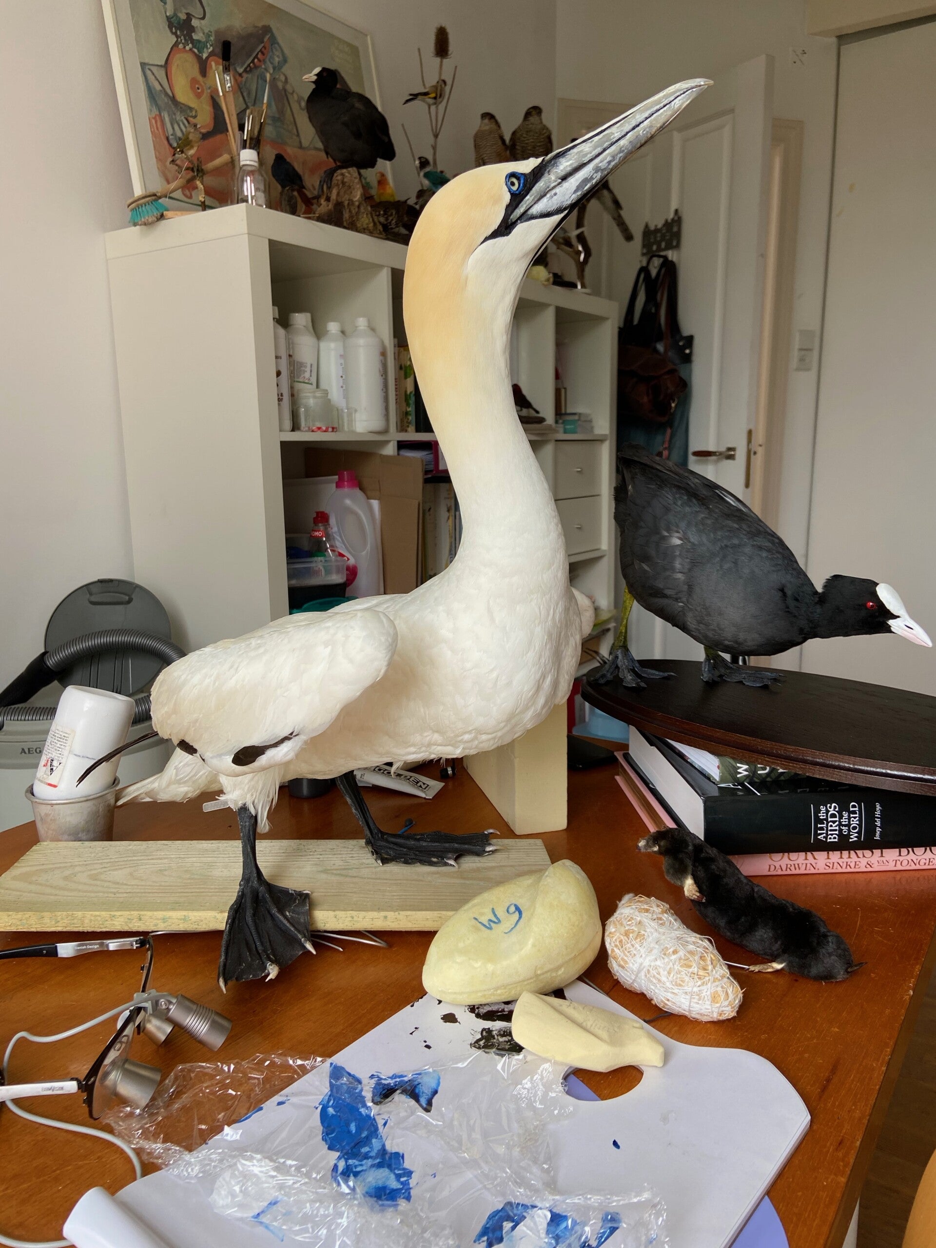 ‘Ik hou van knutselen’ zegt hij en hij neemt ons mee in het proces. Hoe je de huid moet prepareren en hoe lang je wel niet moet föhnen om de vogels weer in model te krijgen. Ook vertelt hij hoe je aan dode vogels komt en waarom je een opgezette vogel niet mag verkopen.