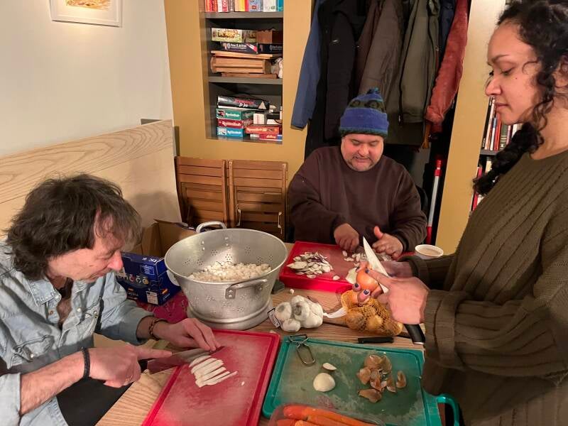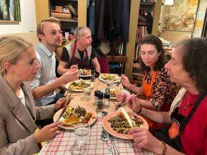 Vrijwilligers en buurtgenoten halen het eten op en koken er gezamenlijk een gratis en gezonde maaltijd van. Elke keer een creatieve uitdaging: je weet immers nooit wat de opbrengst van de dag zal zijn! Als het eten klaar is, zijn de buurtbewoners/voorbijgangers welkom om aan tafel aan te schuiven. Want naast lekker eten, draait het bij BuurtBuik vooral om de gezelligheid, samenzijn en gesprek delen. Luister mee naar de podcast van Lucy Buddelmeijer.